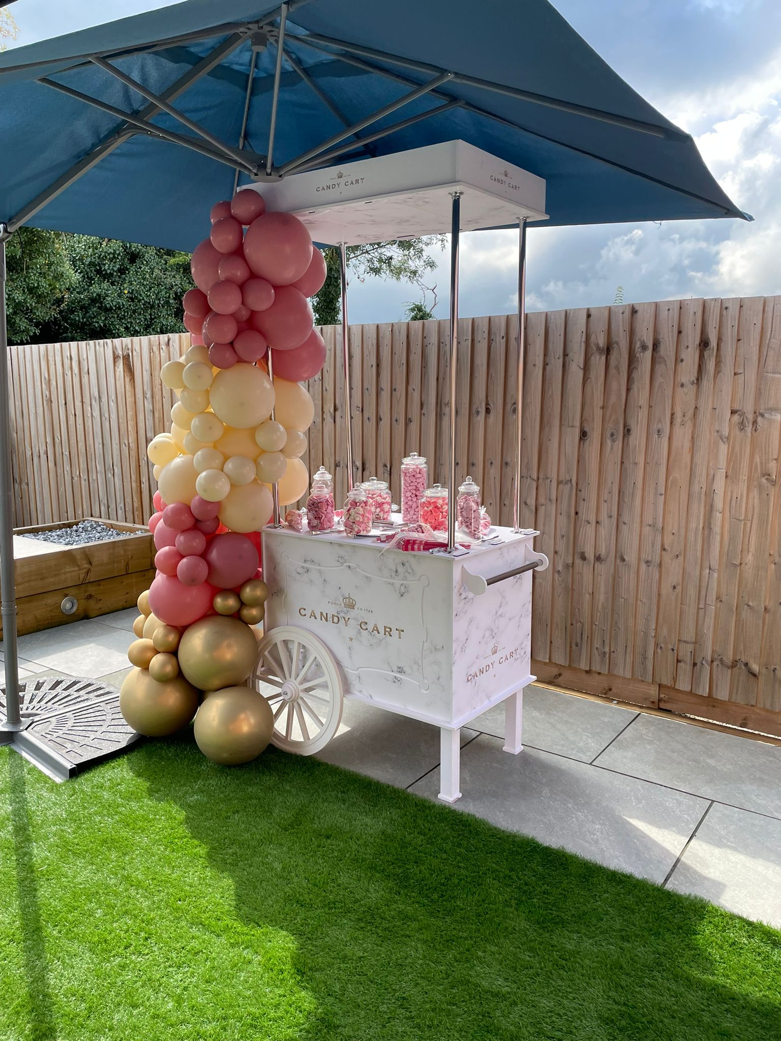 Candy cart with full balloon decor