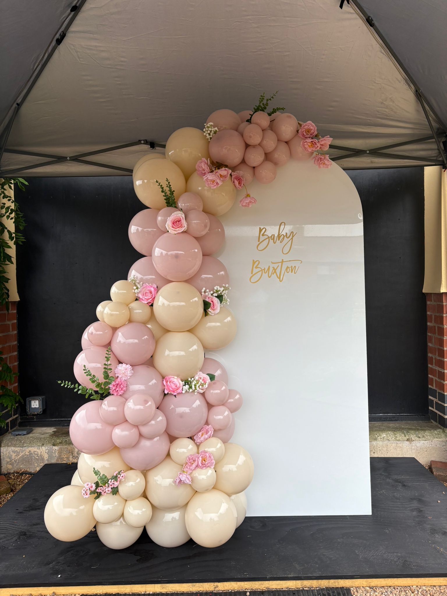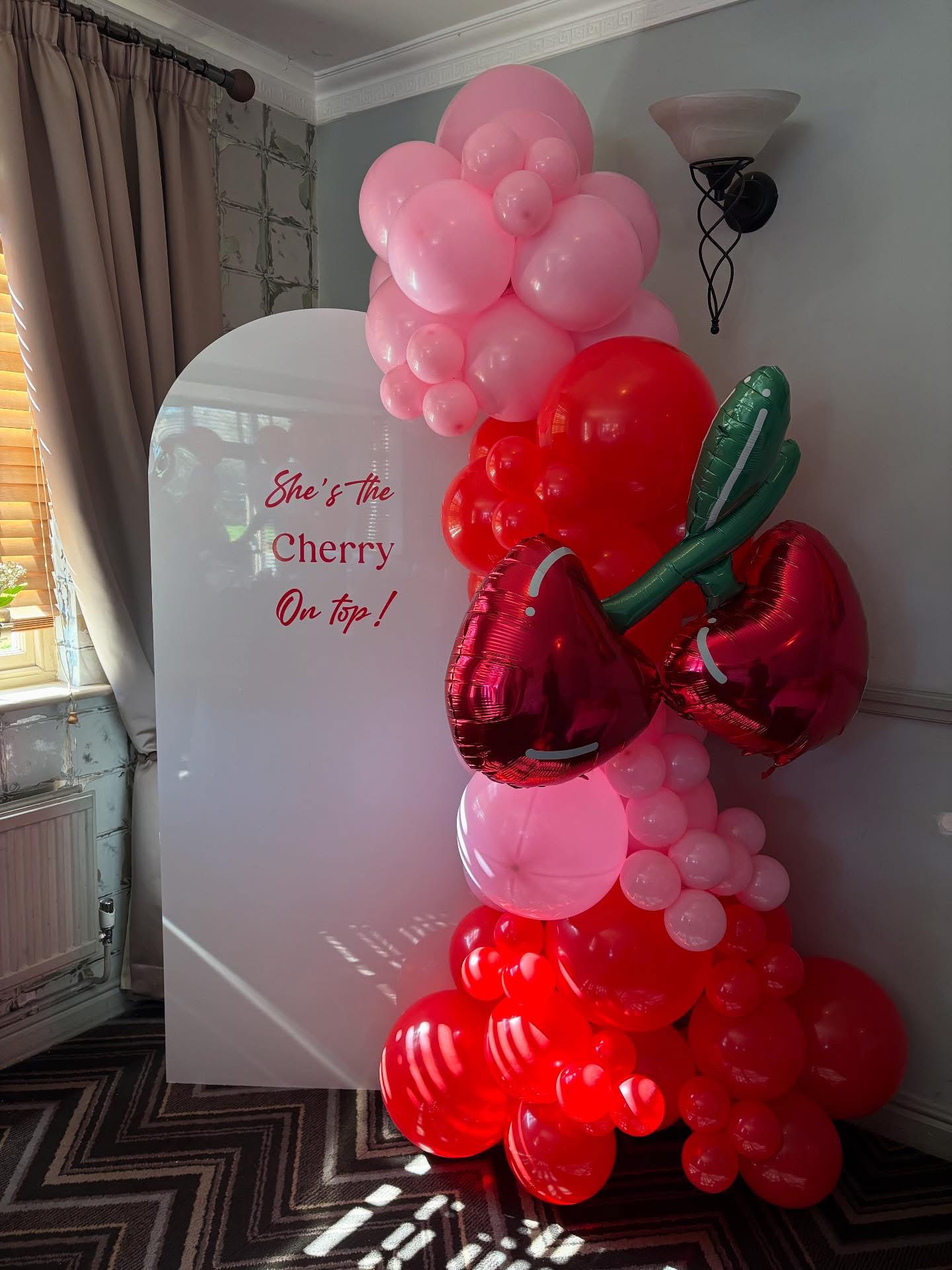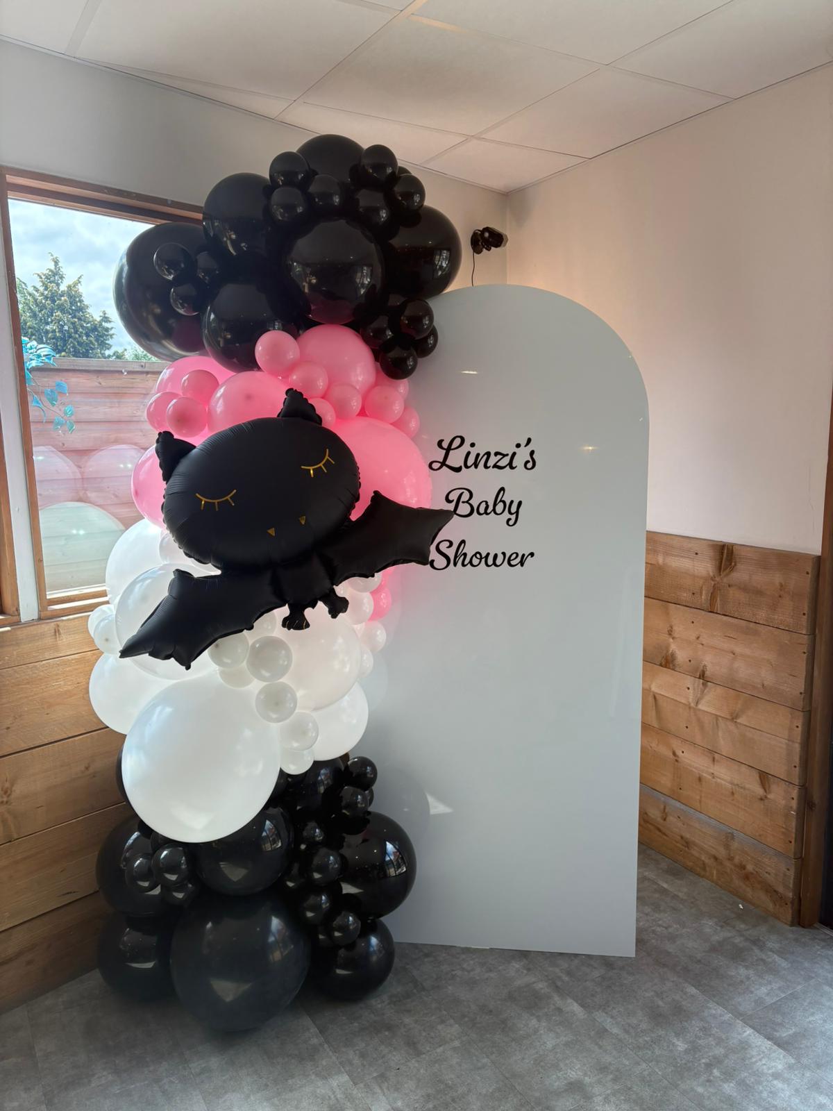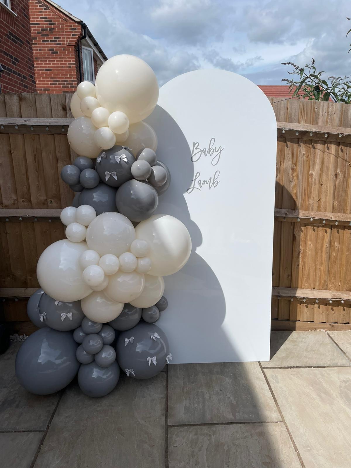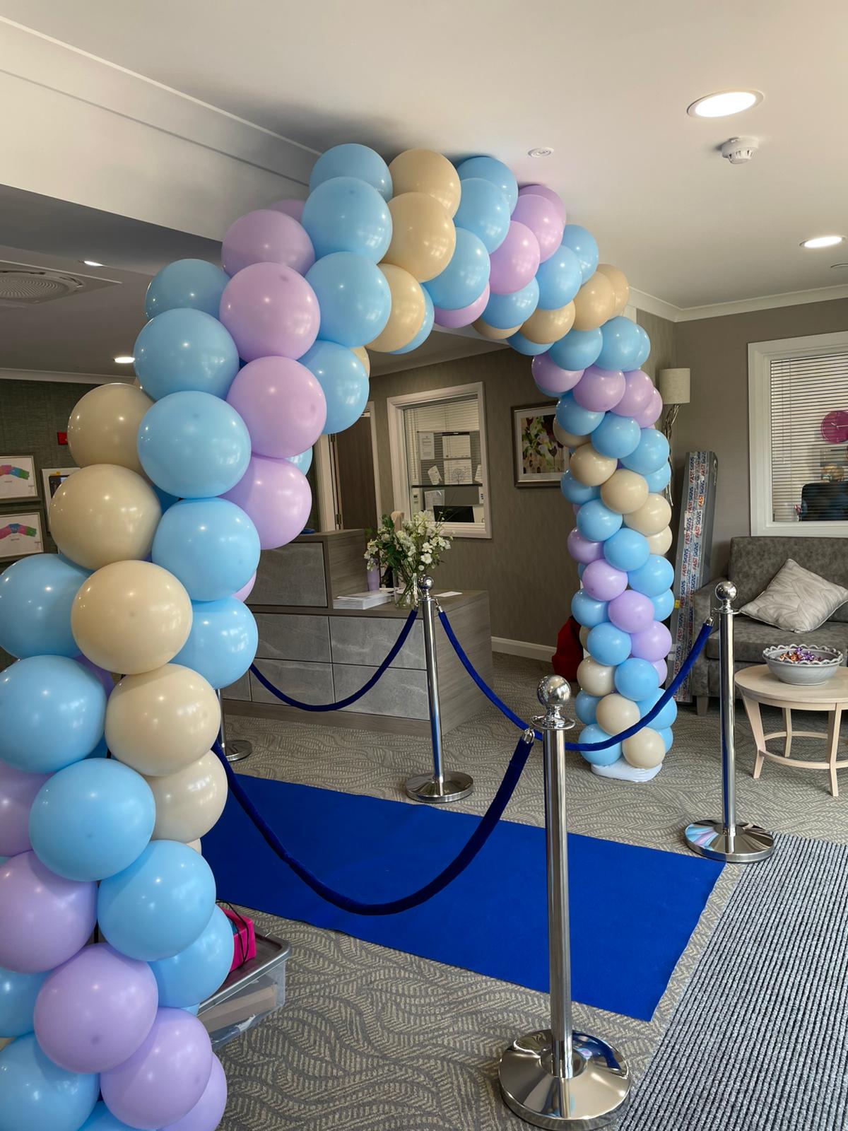A free standing latex balloon garland, size starting from approx. 6ft and can be made in your choice of colours. Price starting from £60.00 (can be delivered at an additional cost).