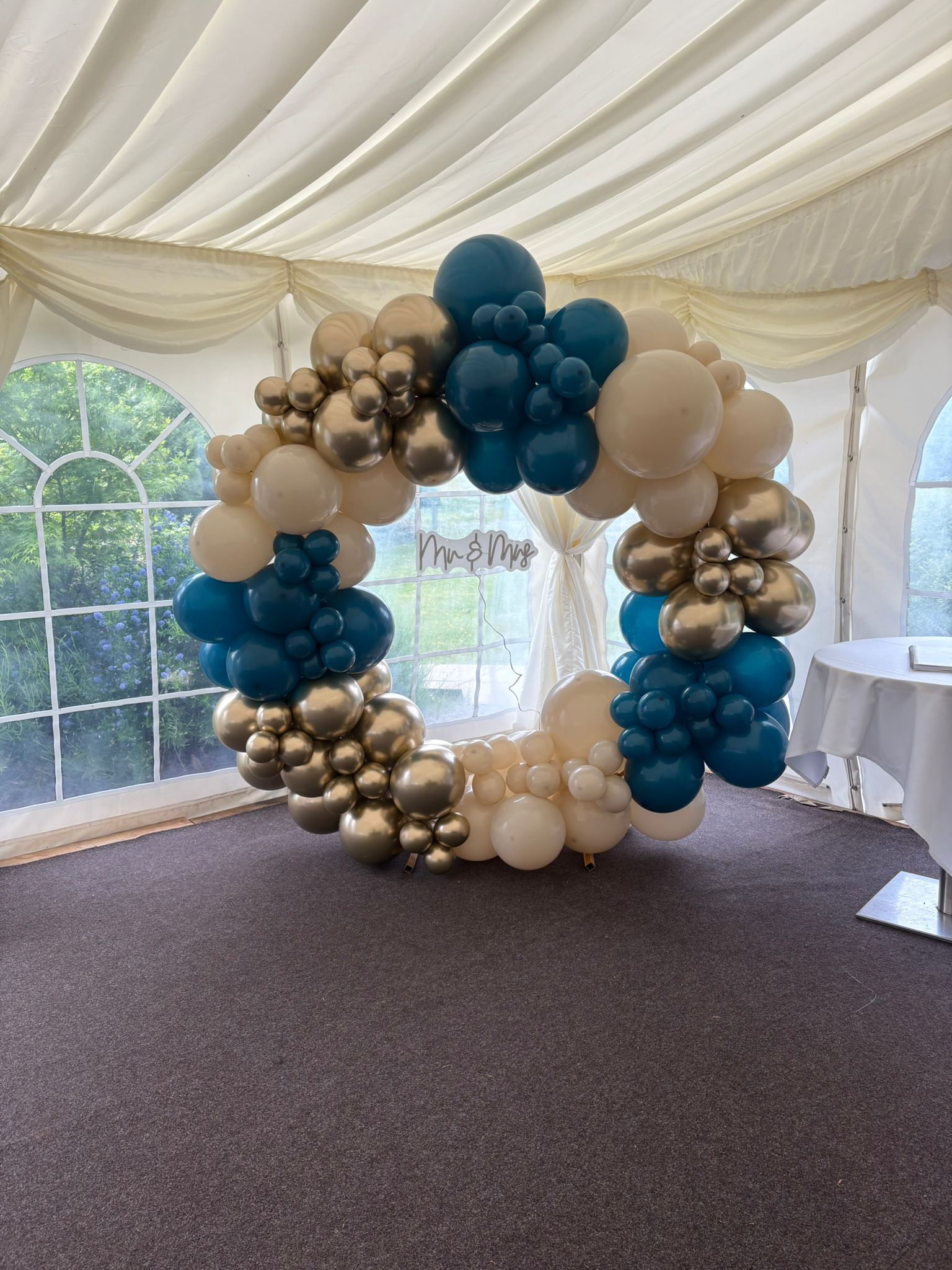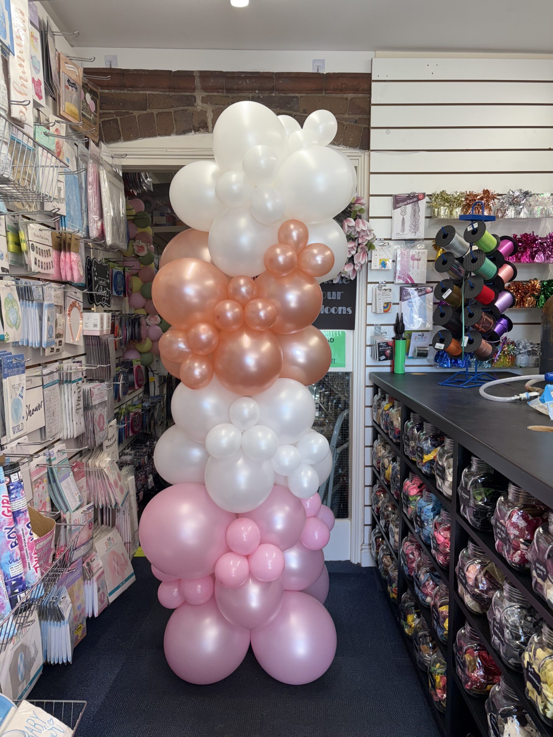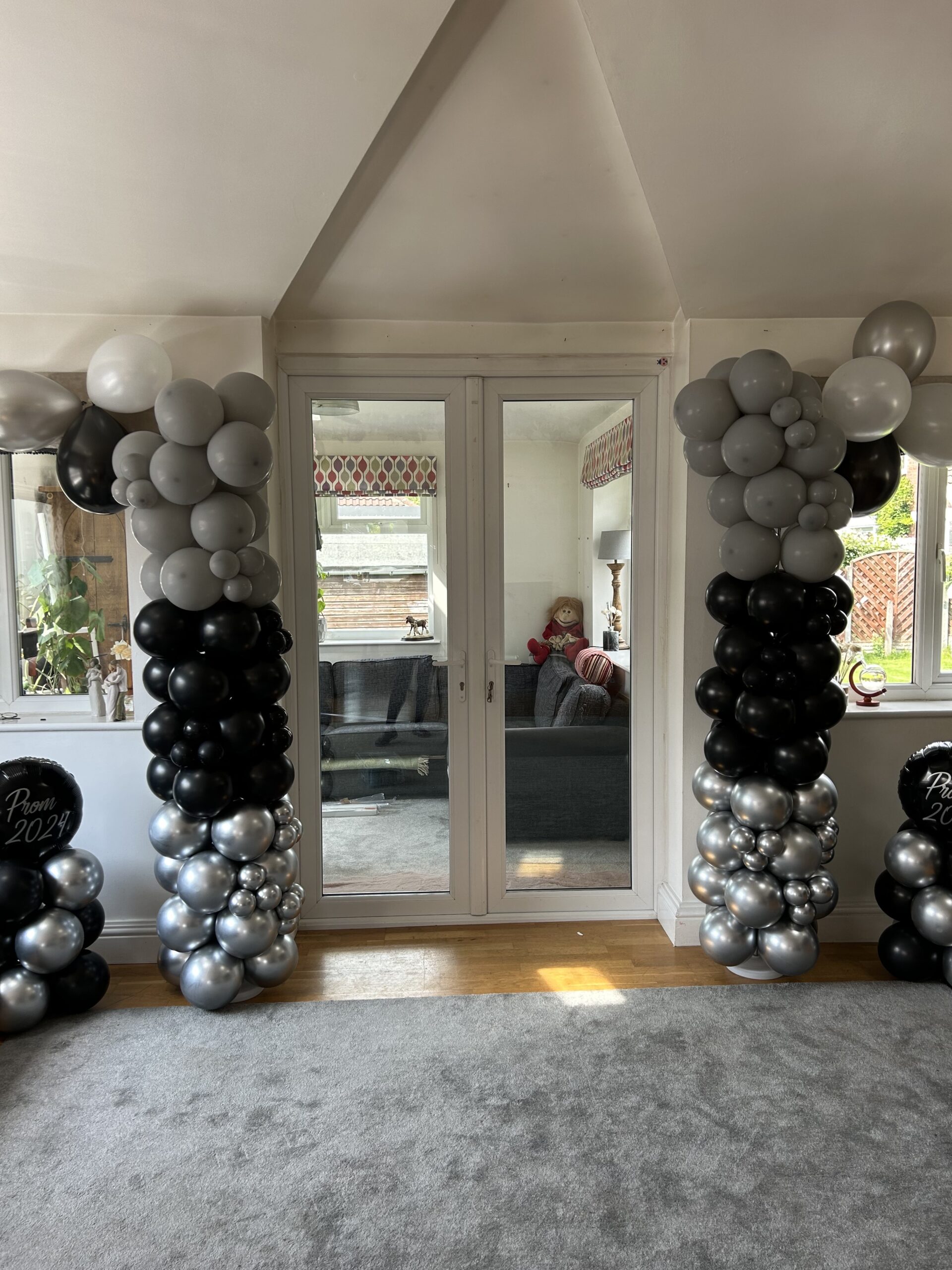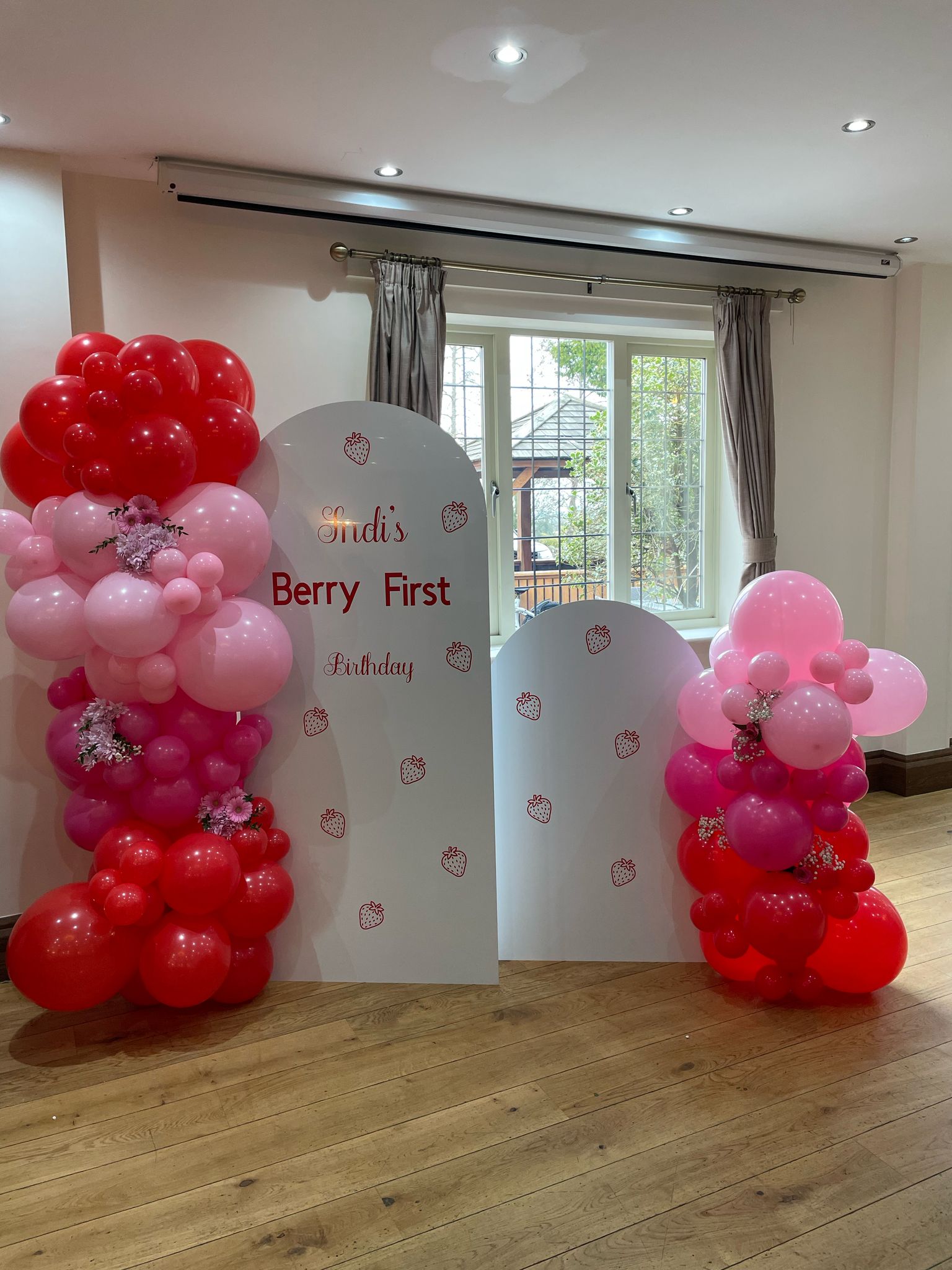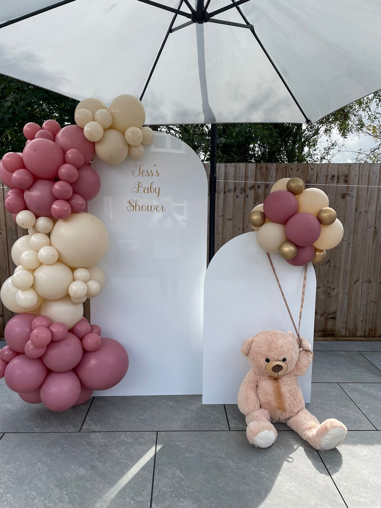 A free standing latex balloon garland, size starting from approx. 6ft and can be made in your choice of colours. Price starting from £60.00 (can be delivered at an additional cost).