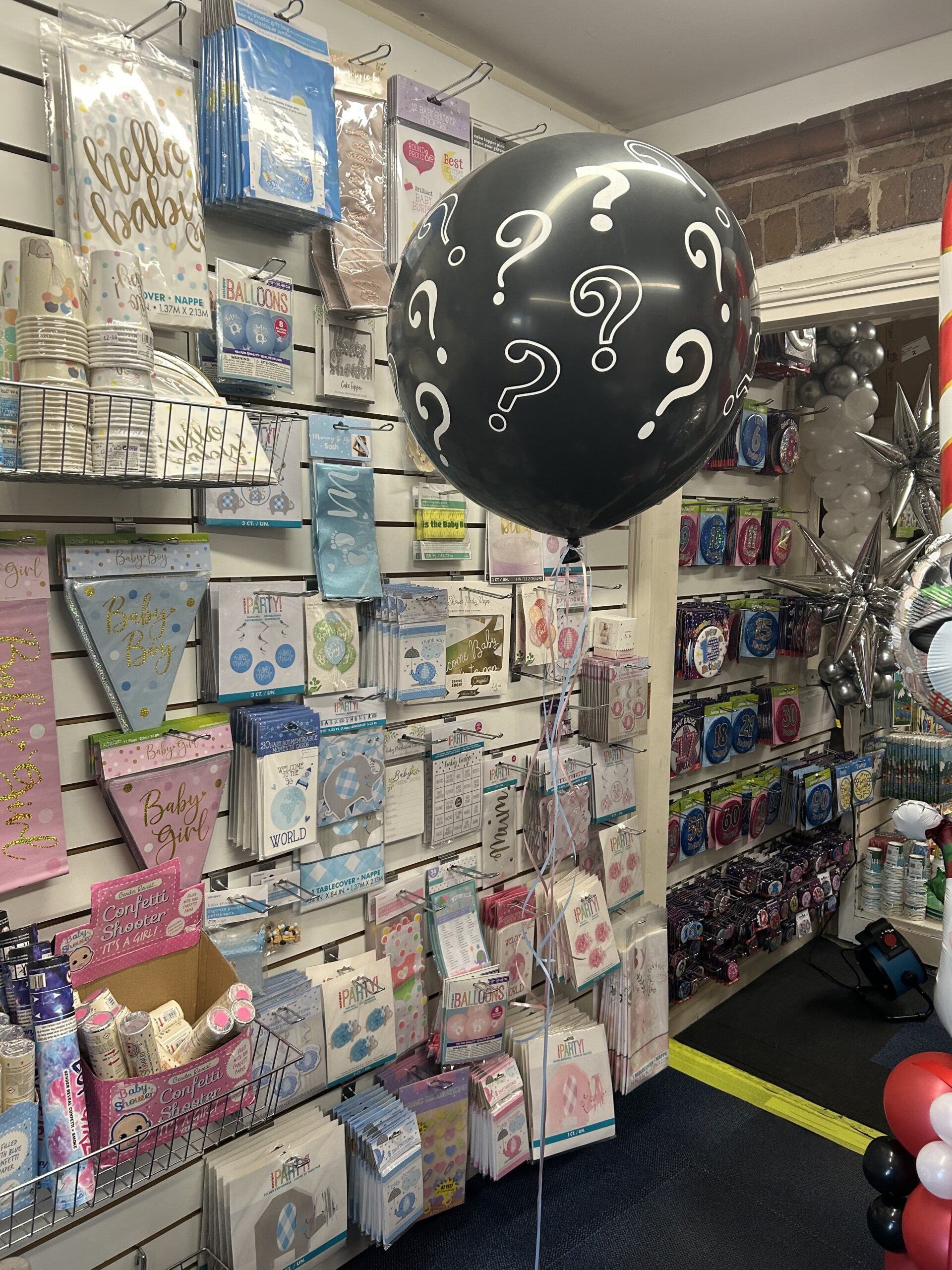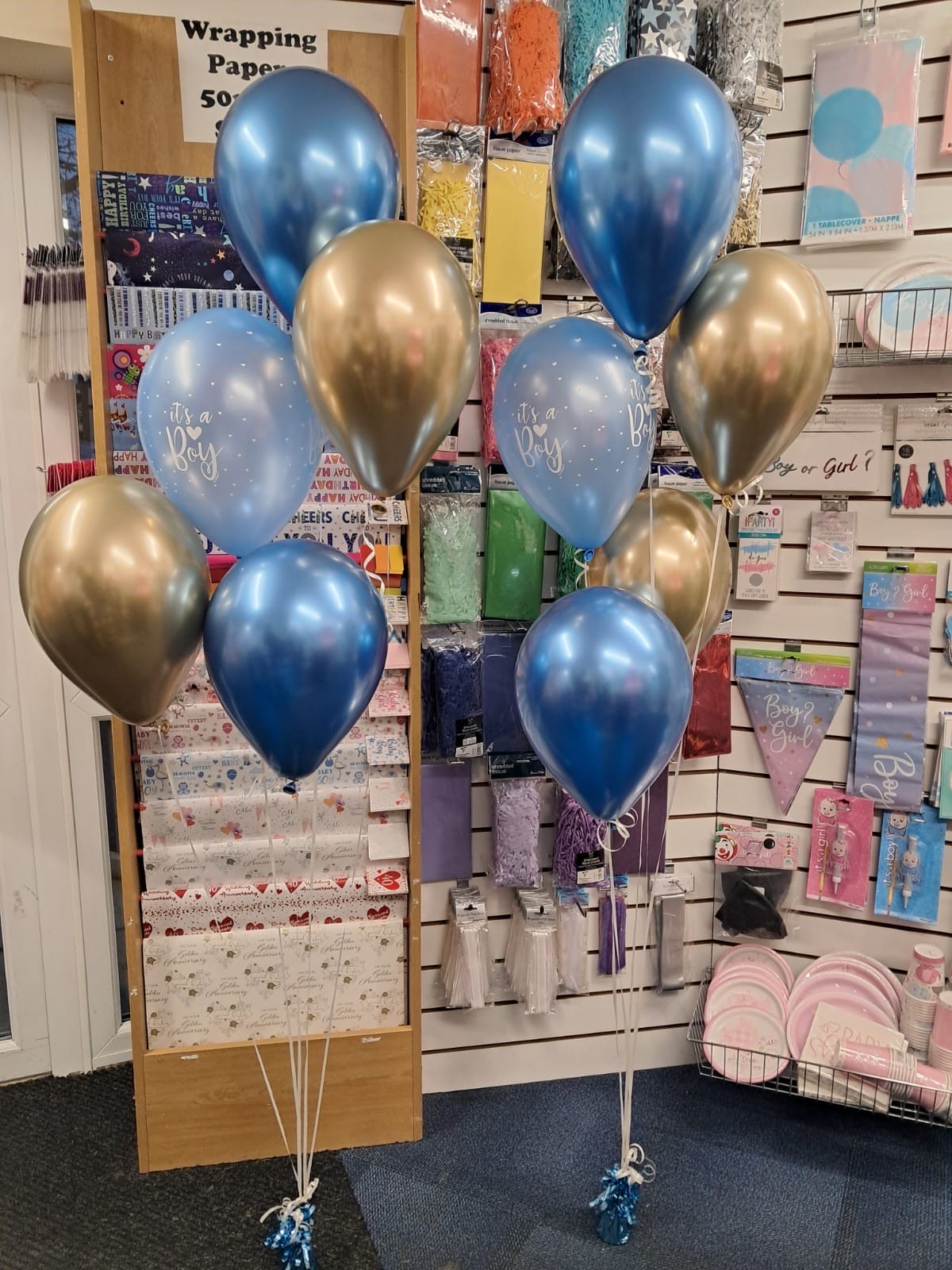 A 36” latex balloon designed to be popped to reveal the gender of a baby. We hand stuff the balloons with either pink or blue confetti. This is a helium balloon that includes a weight and blue & pink ribbons for decoration. Price £14.99