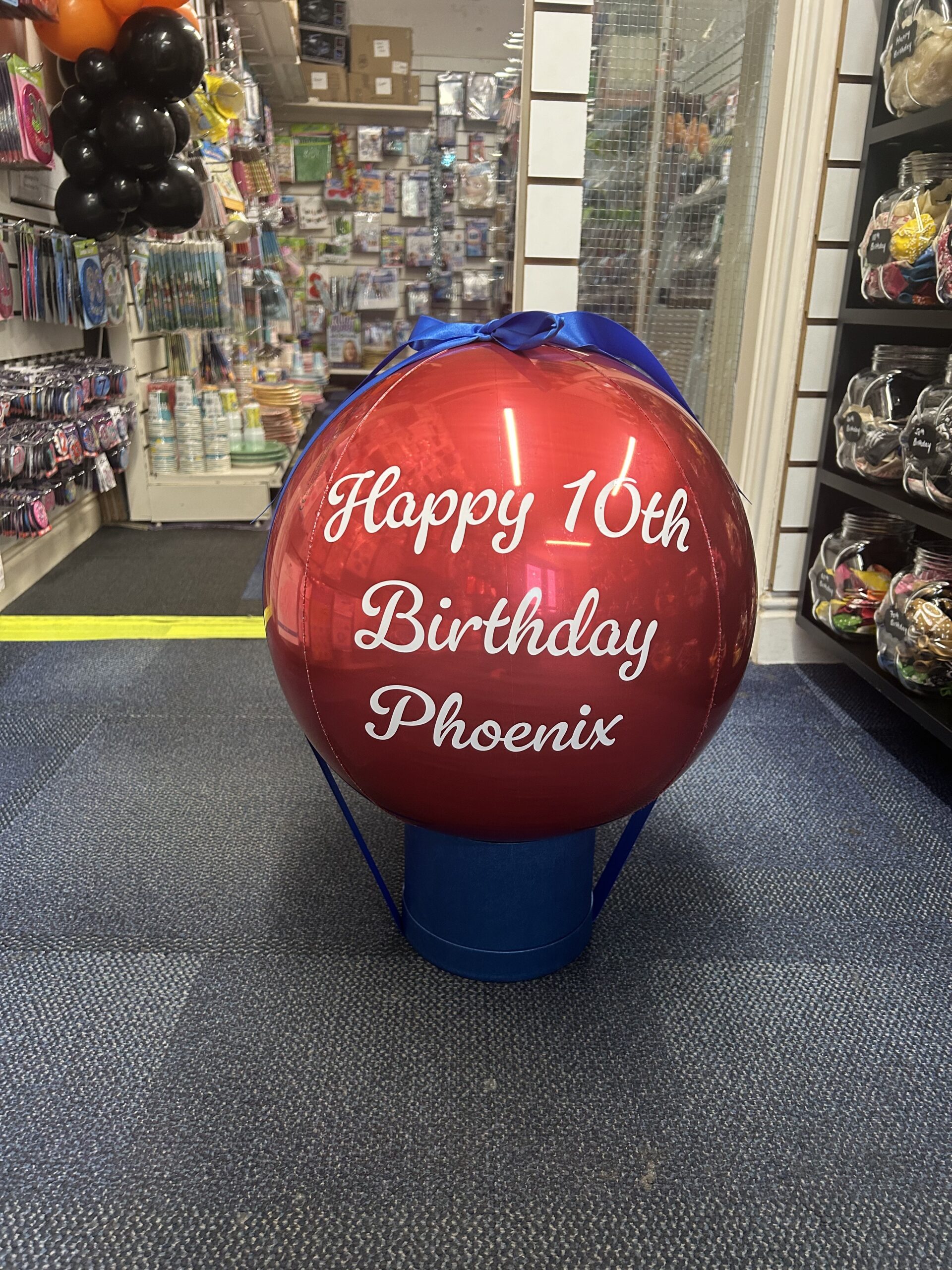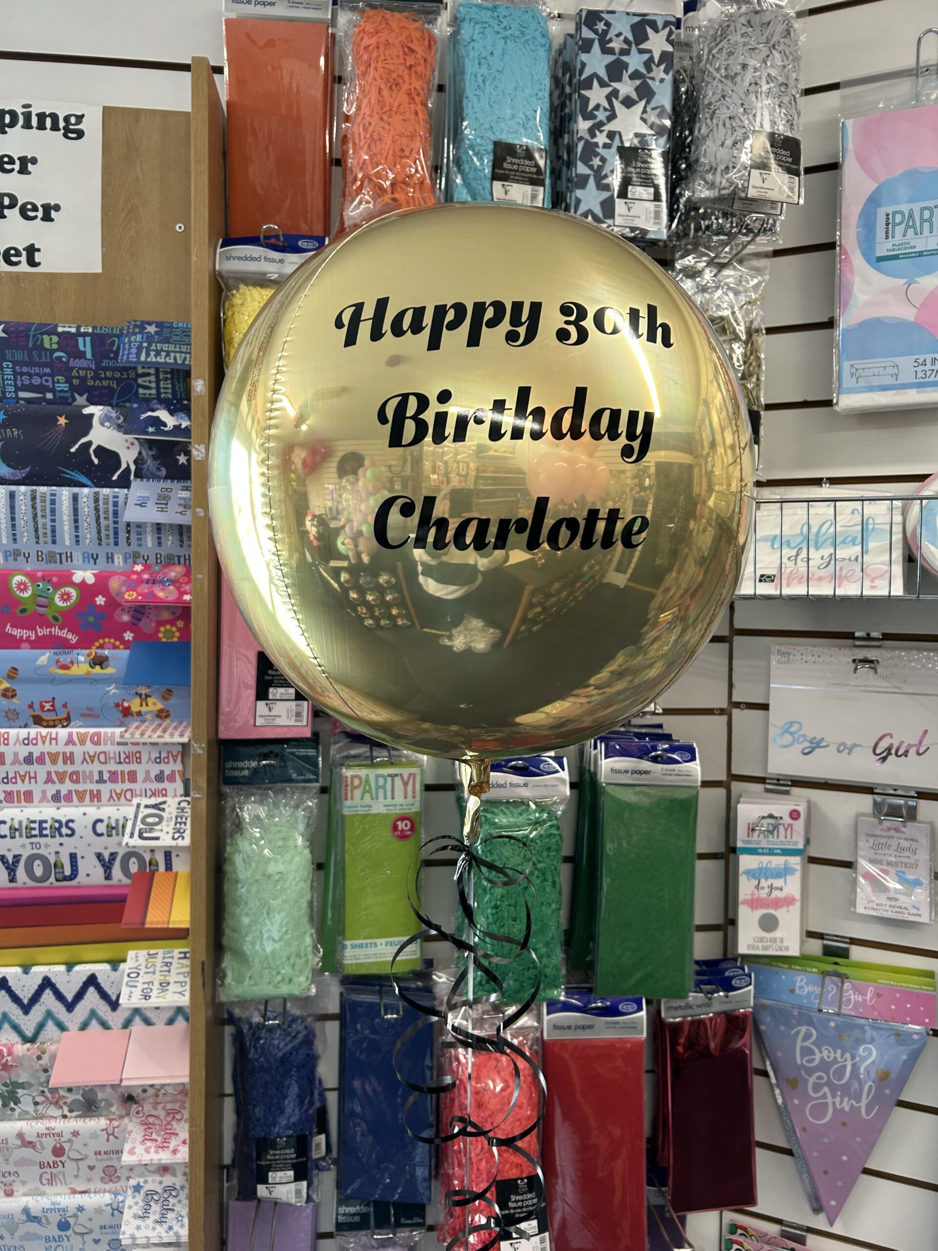 A spherical shaped balloon available in lots of different colours. We can personalise this balloon with a message of your choice. This is a helium balloon that includes a weight and ribbons in your choice of colours. Price £10.49