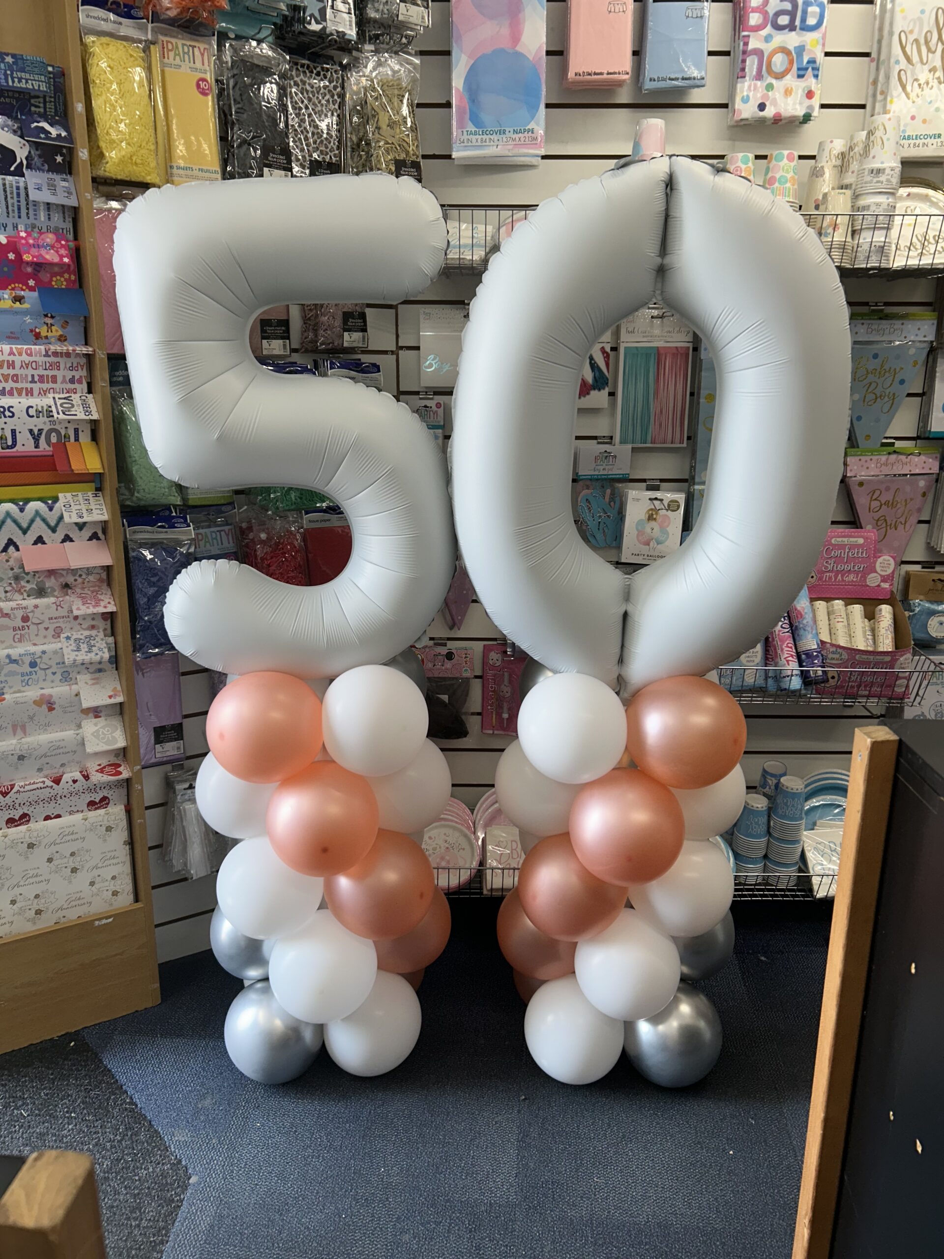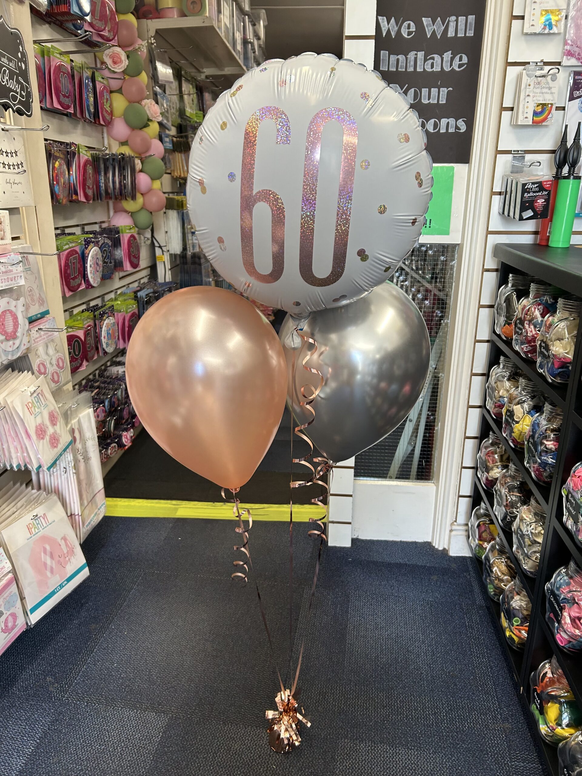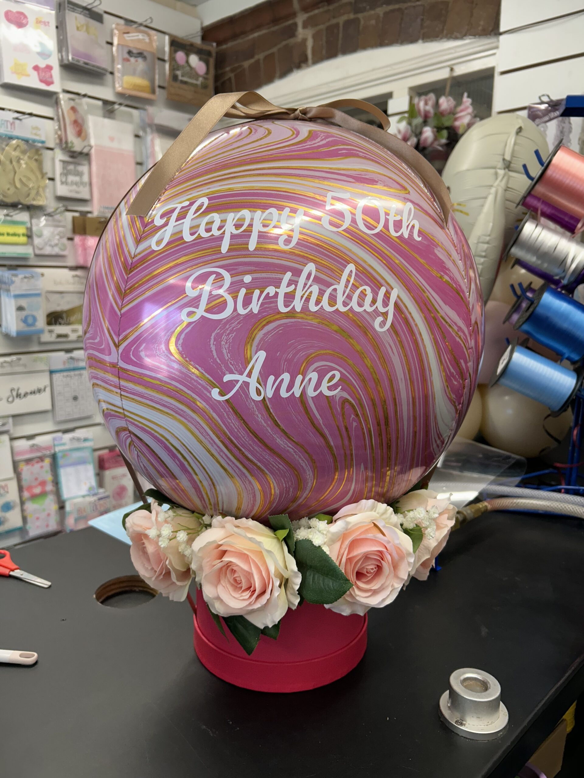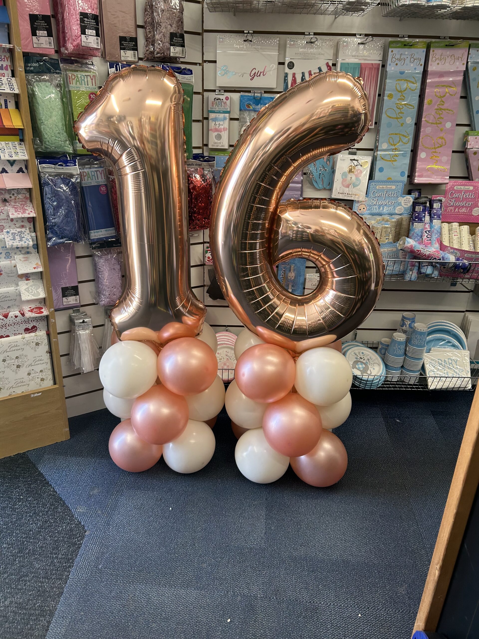 A floor standing bunch of balloons that includes 5 latex in your choice of colours. Can be personalised for a specific age or celebration E.g. new baby, anniversary, hen party. Price : £12.99.