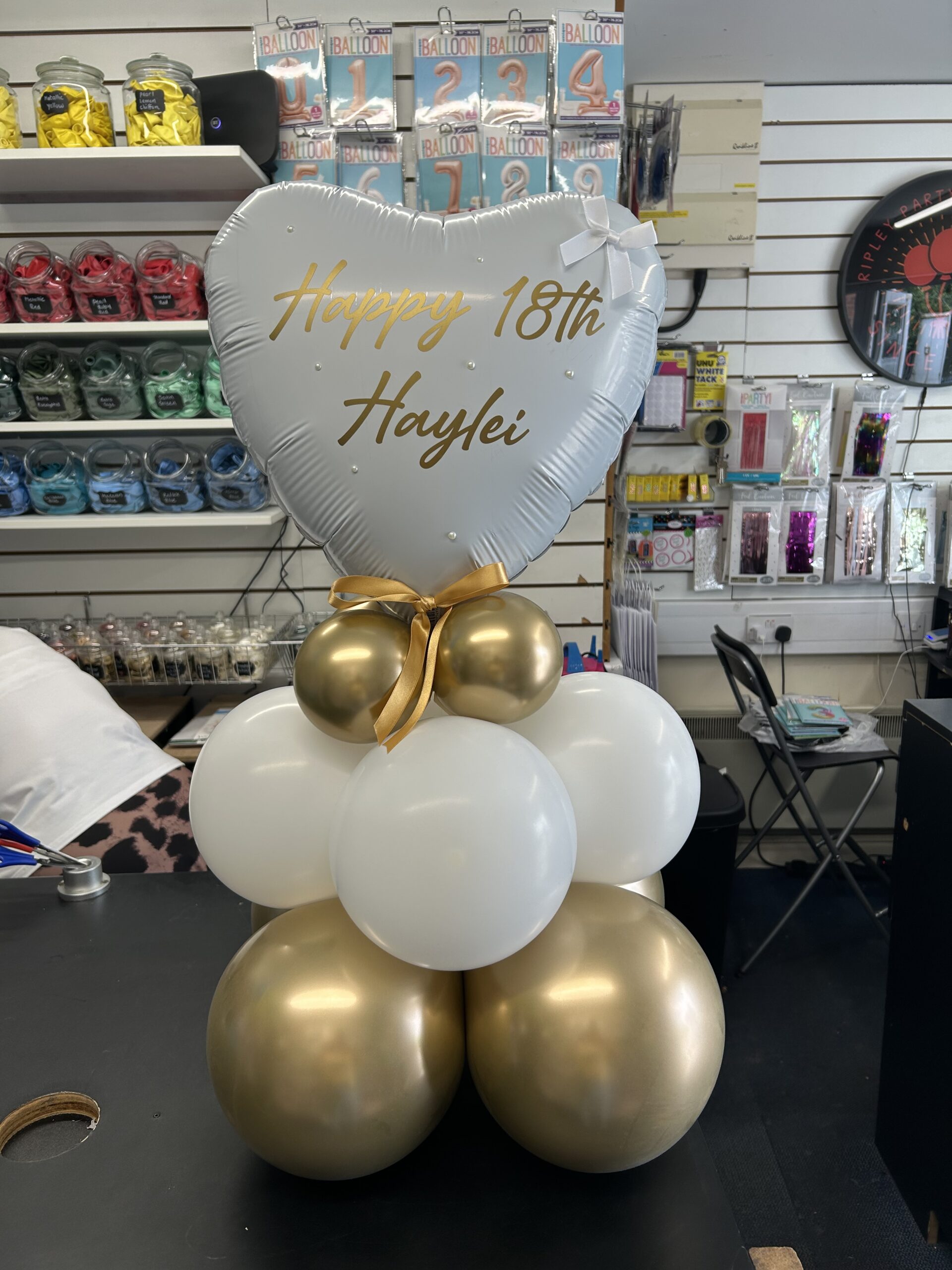 A 36” foil heart in your choice of colour and personalised with any message. This is a helium balloon which includes weight. Price: £17.50