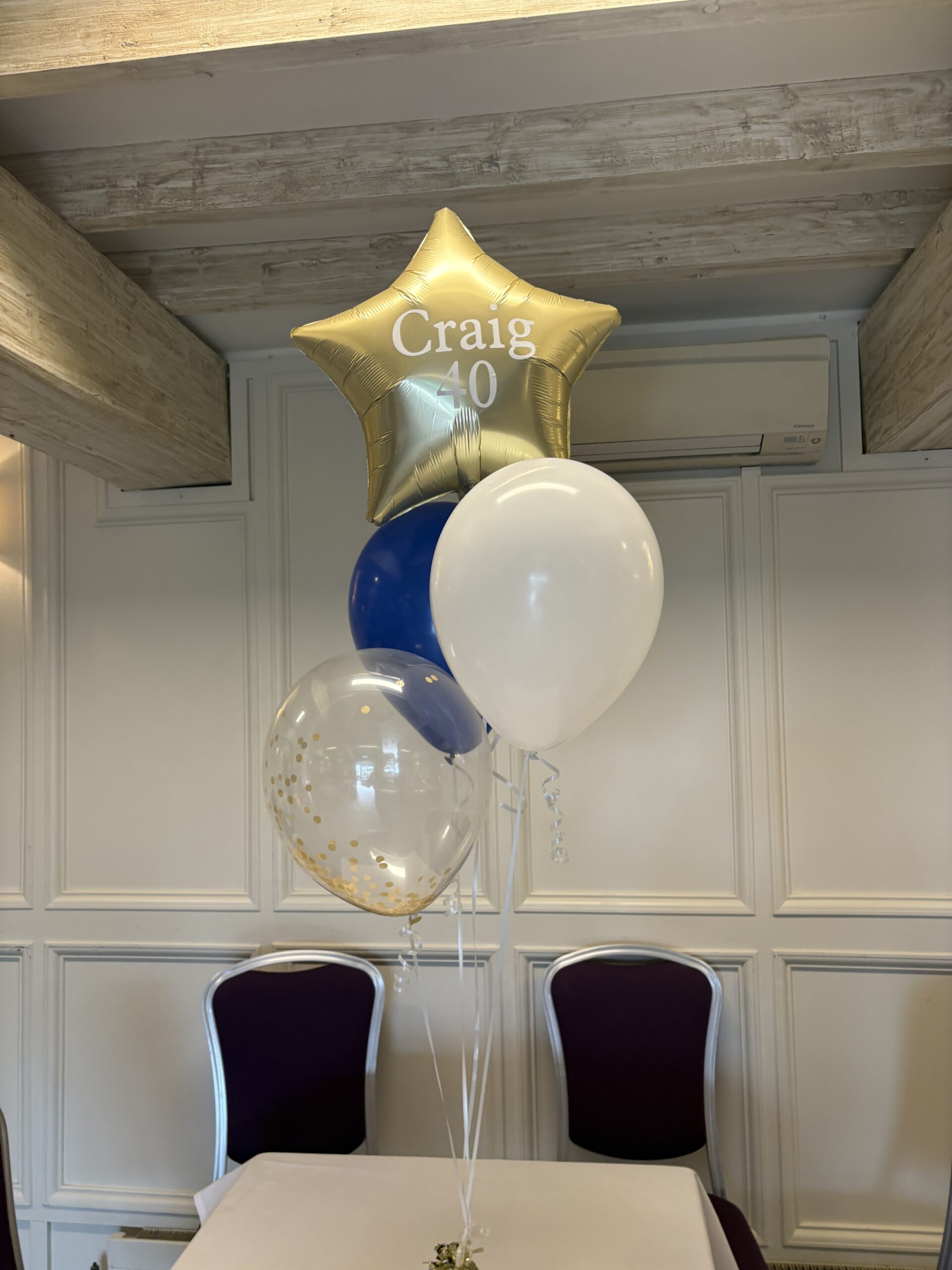 A table standing bunch of balloons that includes 3 latex in your choice of colours. Can be personalised for specific age or celebration i.e new baby, anniversary and hen party. Price: £8.99 including weight